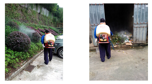 2.外环境,绿化,垃圾堆,污水沟等使用的机动背负式做滞留喷洒,在垃圾堆处发现大量的成蚊,污水沟也发现成蚊和幼虫。我们消杀后 成蚊和幼虫控制到90%以上。
