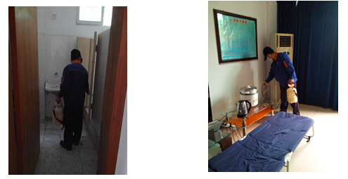 3.住院部1F—5F病房,走廊,卫生间,公共区域:门诊部 1F—5F办公室,卫生间,走廊,公共区域。使用手提式做滞留喷洒。在角落,卫生间处有发现成蚊。经滞留喷洒后成蚊效果得到有效控制。