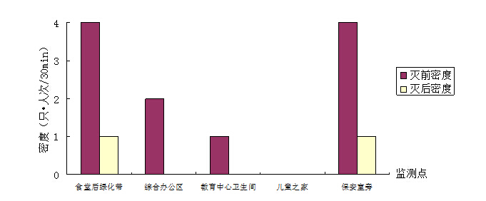 经消杀处理,蚊蝇下降率达90%以上,蜚蠊下降率达60%;蚊蝇及蜚蠊均得到有效控制,儿童福利院相关领导对于本次的消杀效果予以肯定。