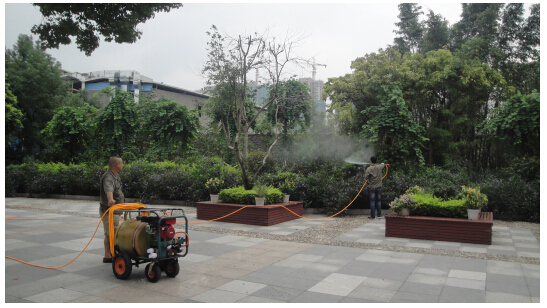 对院内的所有绿化带进行空间喷洒和滞留喷洒药品。